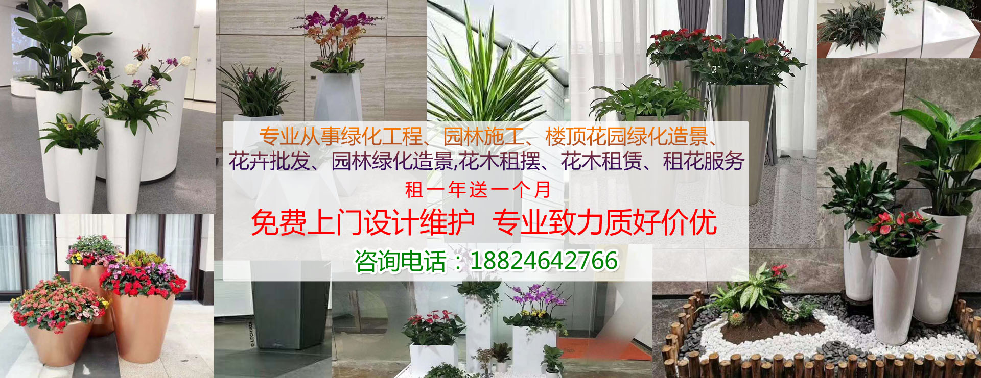 專業從事綠化工程、園林施工、樓頂花園綠化造景、花卉批發、園林綠化造景,花木租擺、花木租賃、租花服務,致力于園林綠化、園林施工;小區、工業區、私人庭院、屋頂樓頂花園綠化造景;寫字樓、賓館酒樓、節日慶典活動、會議等場所的盆花花木租擺租花服務。